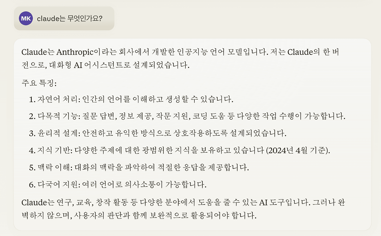 제가 경험한 Claude의 장점은 다음과 같습니다