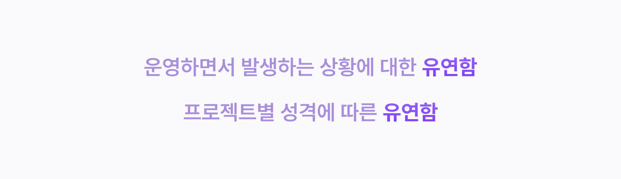 프로젝트를 진행하면서 어려운 상황 중 하나는 이미 만들어진 시스템을 대규모로 수정해야 할 때일 것입니다. 가령 프로덕트 완성 후 운영 단계에서 기존 텍스트 스타일 체계로는 대응이 어려워 체계를 완전히 바꿔야 하는 경우처럼 말이죠. 저희 역시 많은 프로젝트를 진행하면서 이런 상황을 여러 번 겪었기 때문에, 시스템을 구축할 때 ‘유연함’에 중점을 두었습니다. 특정 상황에서 대규모 수정을 피할 수 있도록 손쉽게 변경하거나, 조정할 수 있는 체계를 목표로 했습니다.