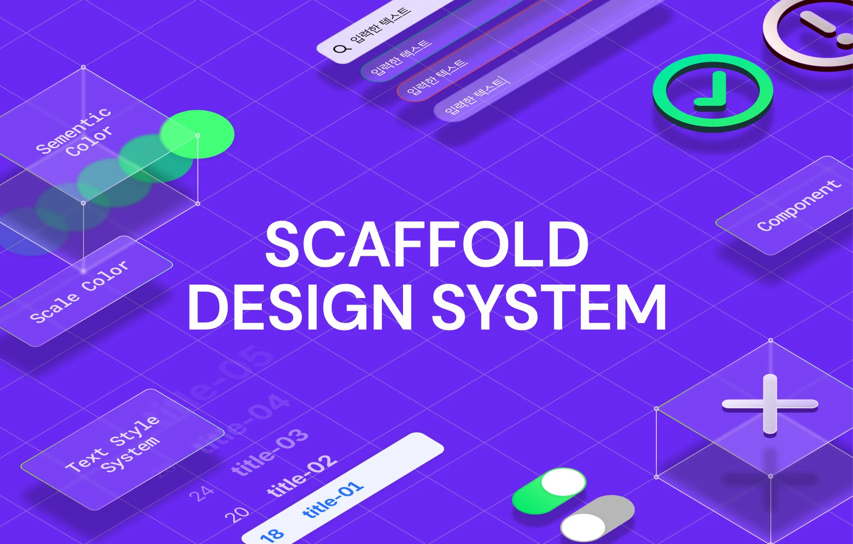 이 기준 디자인 시스템은 프로젝트마다 성격이 다르기 때문에 ‘모두가 똑같이 써야 하는 규칙’이라기보다는 가이드라인에 가깝습니다. 각 프로젝트의 디자인 시스템 구축을 돕는 보조 도구이므로 시스템의 명칭을 ‘스캐폴드 디자인 시스템(Scaffold Design System)’이라고 지었습니다. 건설 현장에서 작업자들이 작업할 수 있도록 설치하는 구조물인 비계(scaffold)와 같은 역할을 한다는 의미에서 말이죠. 앞으로 네 편의 아티클을 통해 텍스트 스타일 체계, 시멘틱 컬러, 스케일 컬러, 컴포넌트 순으로 스캐폴드 디자인 시스템을 자세히 소개하고, 마지막 편에서는 제작기를 들려드리겠습니다.
