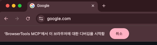 브라우저의 상단에 BrowserTools MCP로 브라우저 디버깅 중이라고 나옵니다.