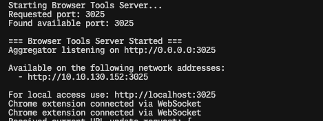 터미널을 열고 다음 명령어를 실행하여 BrowserTools 서버를 실행합니다.