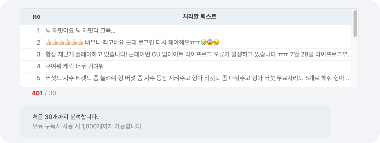 Free 플랜에서는 30건의 데이터에 대해 전처리 기능을 사용할 수 있는데요. 더 많은 양의 데이터 전처리가 필요하다면 Standard 또는 Business 플랜을 고려해 보세요!