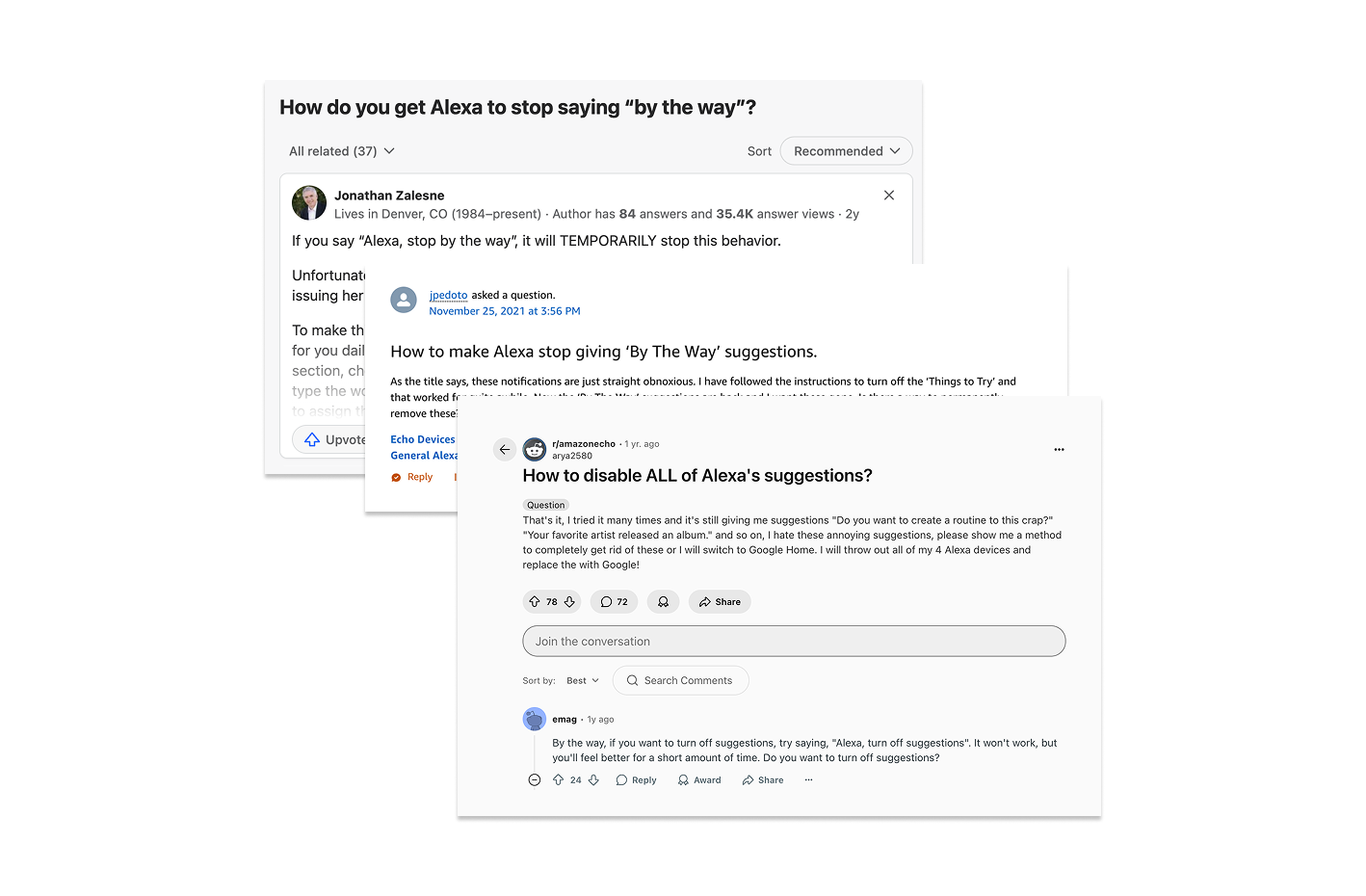 실제로 아마존 알렉사의 ‘By the way’ 기능이 대표적인 사례입니다. 이 기능은 사용자가 알렉사에게 질문을 하면, 대답을 마치면서 “그런데(By the way)… 이건 어떠세요?” 하며 추가적인 제안이나 질문을 던집니다. 겉보기엔 먼저 도움을 주는 기능처럼 보였으나 사용자들의 반응은 정반대였습니다. Reddit 같은 포럼에는 “원치 않는 개입이라 성가시다”, “내 허락 없이 들어오는 것 같아 불쾌하다”는 불만과 함께 “이 기능을 끌 방법은 없냐”는 질문이 반복적으로 올라왔습니다.