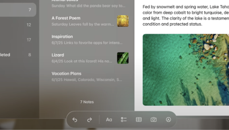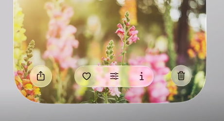- Apple의 접근: 요소가 창밖으로 돌출(Pop-out)되며 굴절 효과를 주어 위계를 만들고 VisionOS와의 통일성을 강조합니다. VisionOS에서 환경 주변으로 UI요소가 자연스럽게 스며들었던 것처럼 iOS에서는 빛과 그림자의 방향이 기기를 기울이는 방향에 맞춰 빛이 이동함으로써 실제 외부 세계의 공간과 모바일이 연결된 감각을 만들어내고 있습니다.