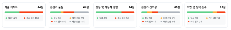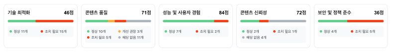 쿠팡의 경우, 메인 페이지는 분석이 가능했으나 카테고리·기획전 등 다수의 상품 목록 페이지는 외부 진단 기준에서 안정적인 분석이 어려운 상태가 반복적으로 관찰되었다.
