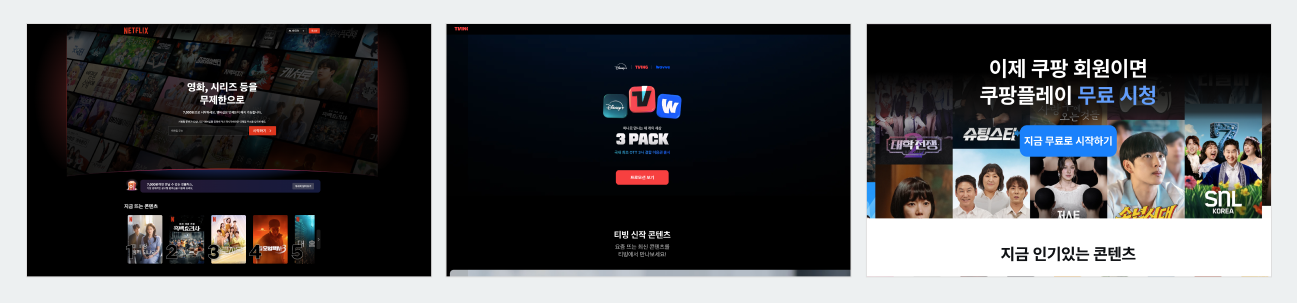 | 넷플릭스 | 티빙 | 쿠팡플레이 | |