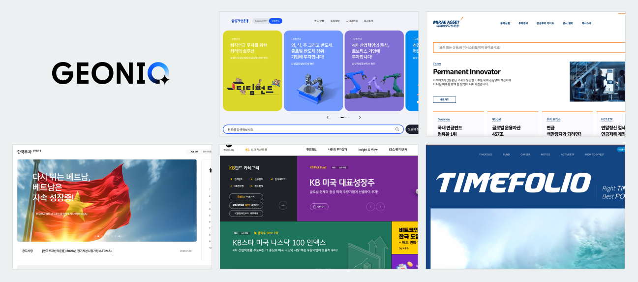 본 리포트는 GEO(AIEO)와 SEO를 한 번에 통합 분석해주는 GEONIQ의 진단 기준에 따라 국내 자산운용사 웹사이트의 페이지 구조와 정보 구성 방식을 분석하고 AI·검색 환경에서 자산운용사의 펀드·ETF 상품이 어떤 구조적 조건에서 선택 단계로 이어지지 않는지를 관찰·정리한 분석 보고서이다.